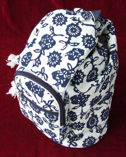 蓝印花布双肩背包