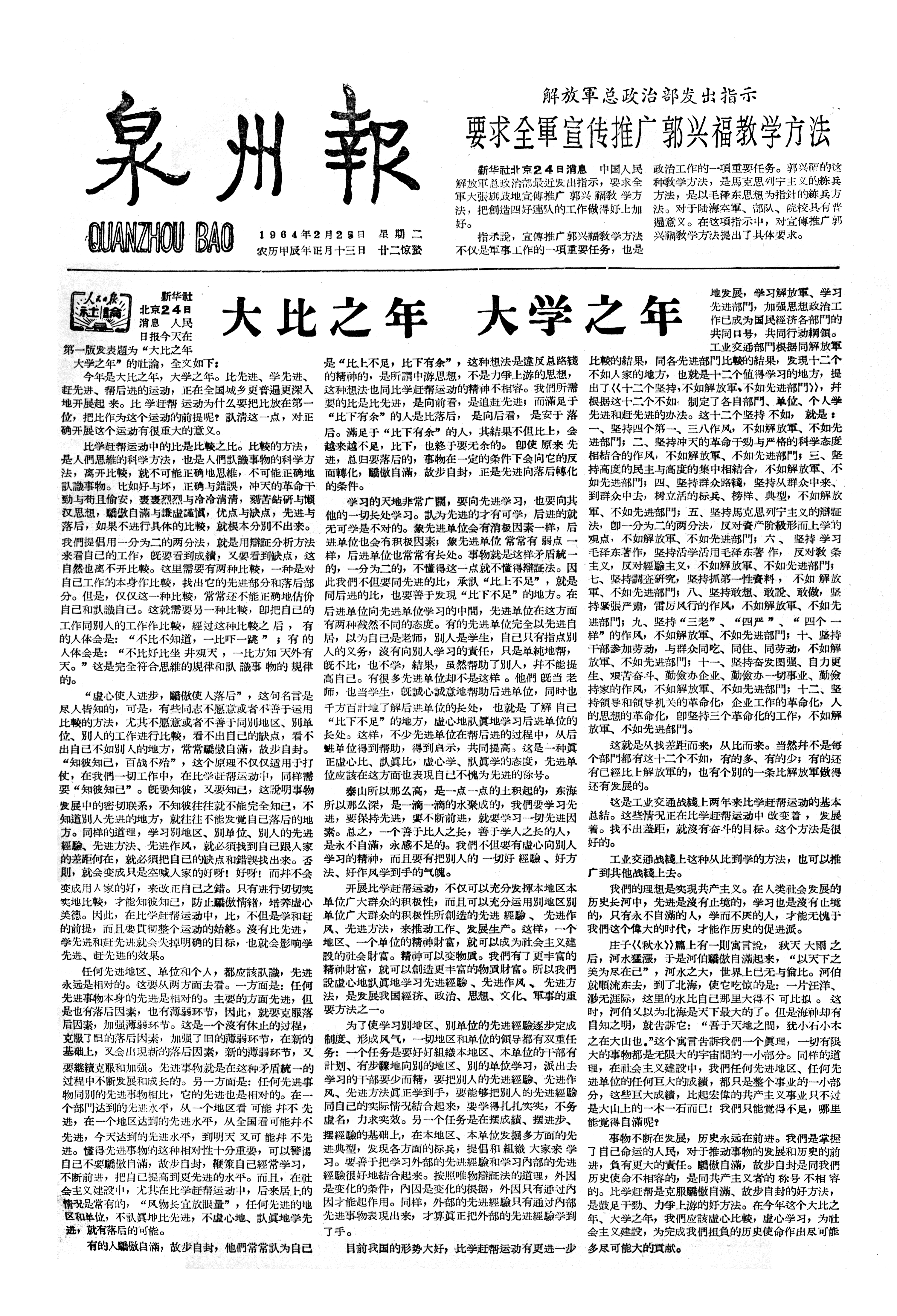 解放軍总政治部发出指示 要求全軍宣传推广郭兴福教学方法
