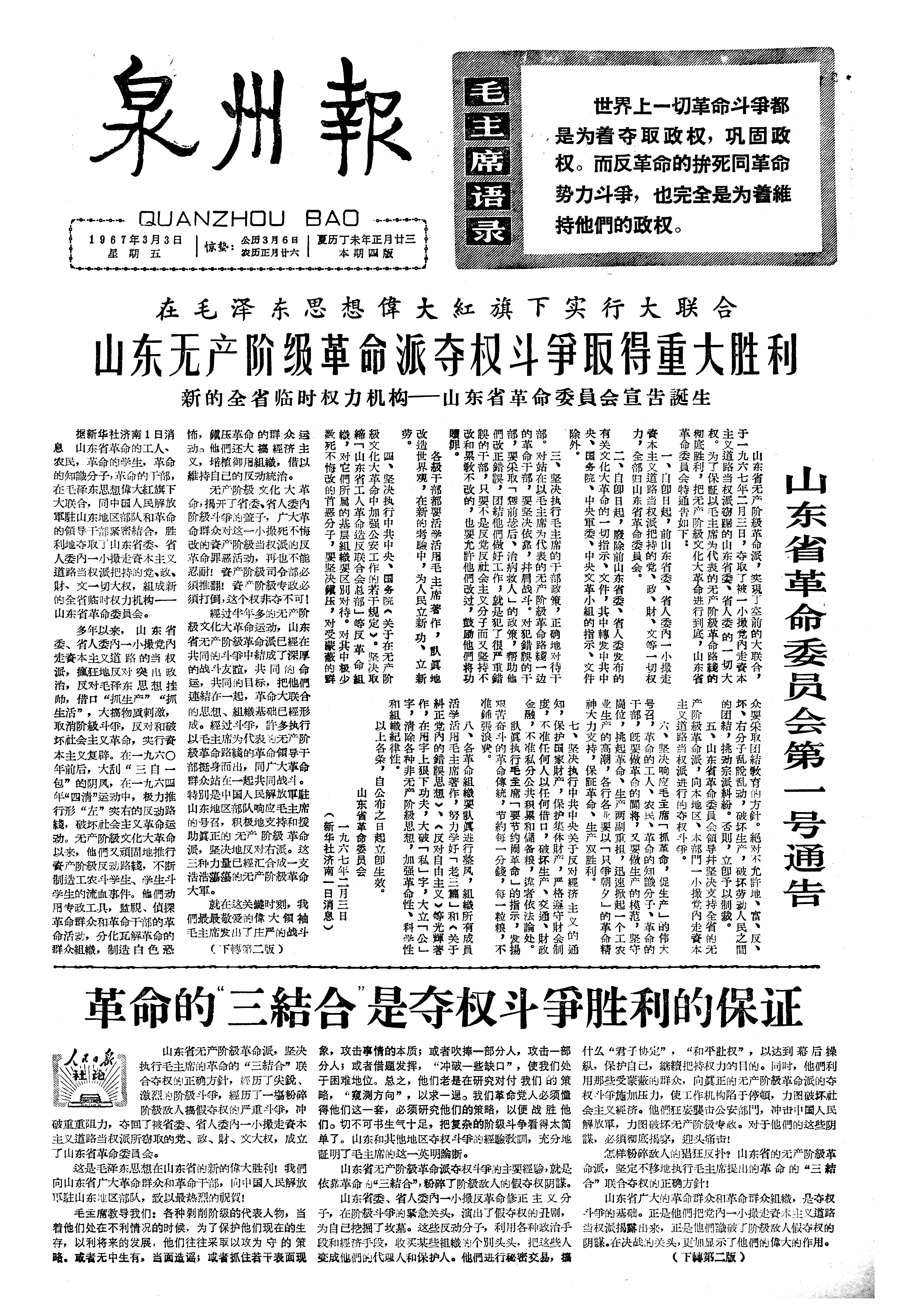 山东省革命委员会第一号通告