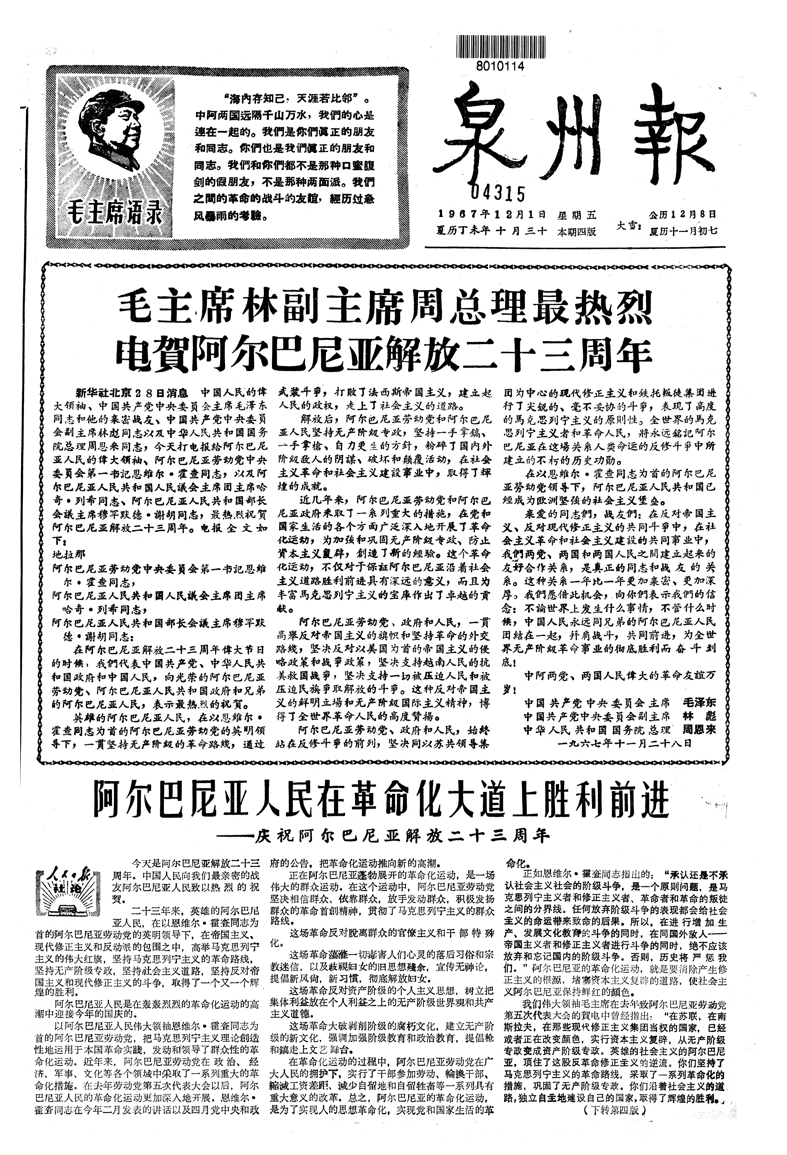 毛主席林副主席周总理最热烈电賀阿尔巴尼亚解放二十三周年