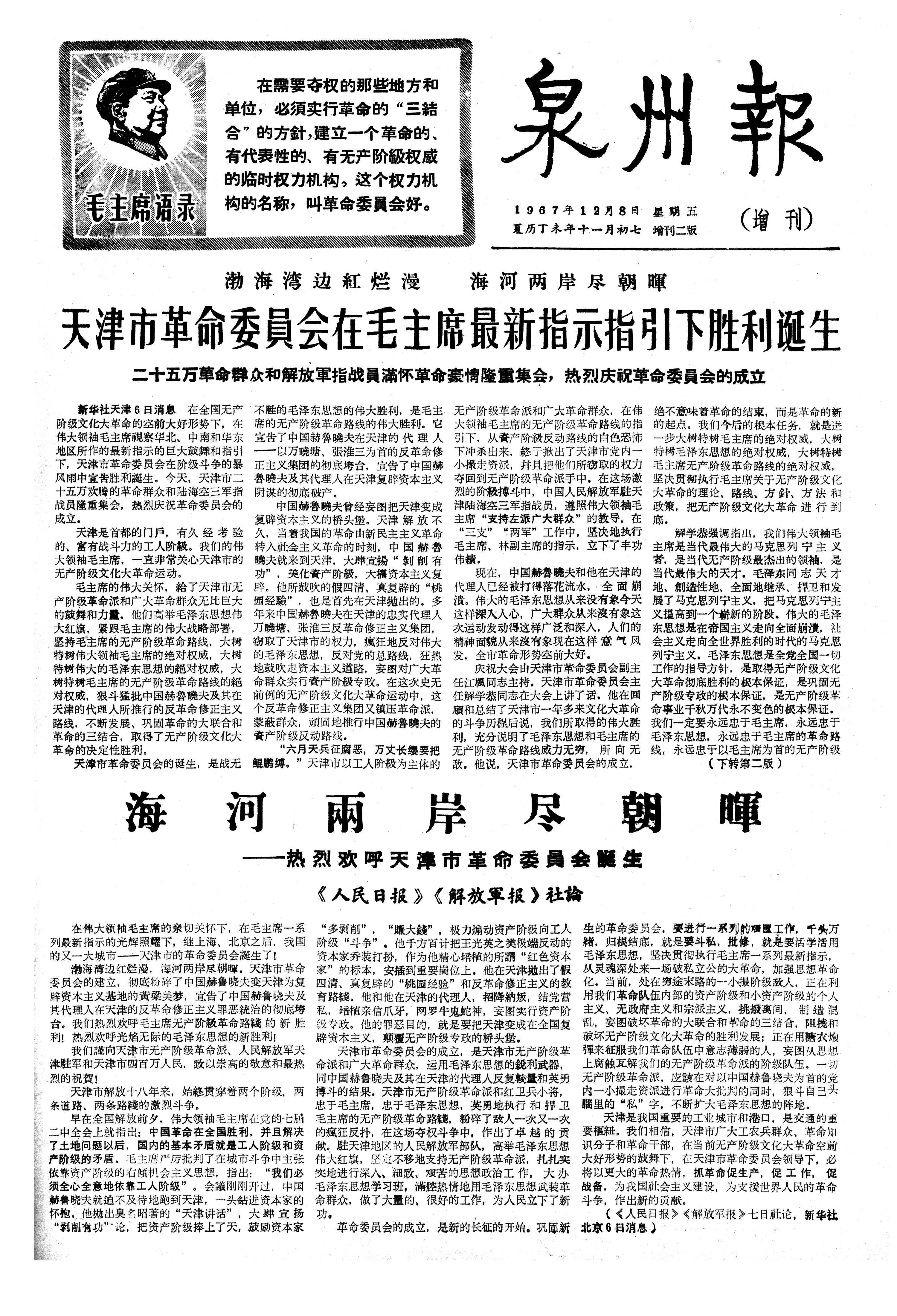 海河兩岸尽朝暉 ——热烈欢呼天津市革命委員会誕生《人民日报》《解放軍报》社論