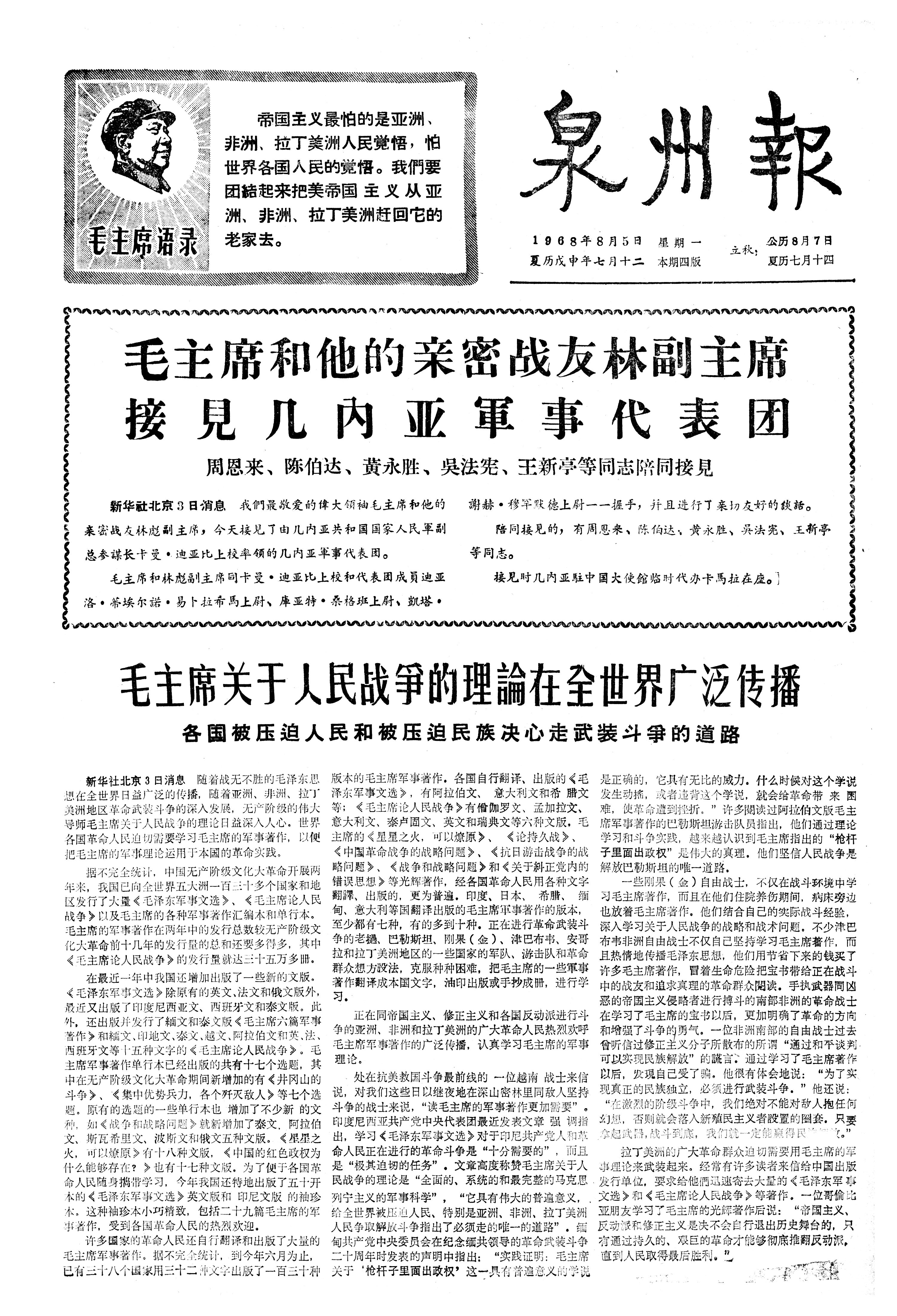 毛主席和他的亲密战友林副主席接見几內亚軍事代表团 周恩来、陈伯达、黃永胜、吳法宪、王新亭等同志陪同接見
