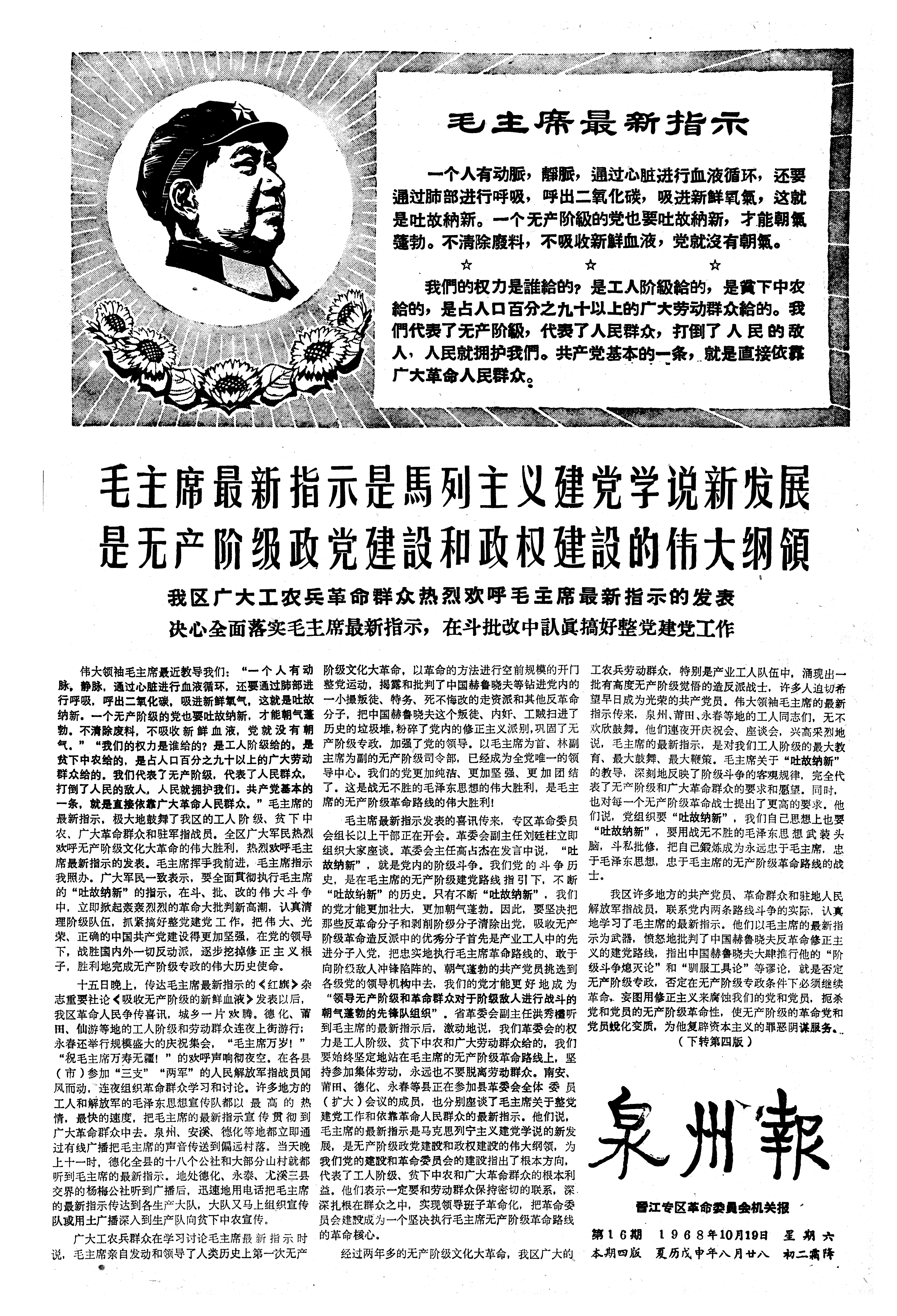 毛主席最新指示是馬列主义建党学说新发展是无产阶级政党建設和政权建設的伟大纲領 我区广大工农兵革命群众热烈欢呼毛主席最新指示的发表 决心全面落实毛主席最新指示,在斗批改中認眞搞好整党建党工作