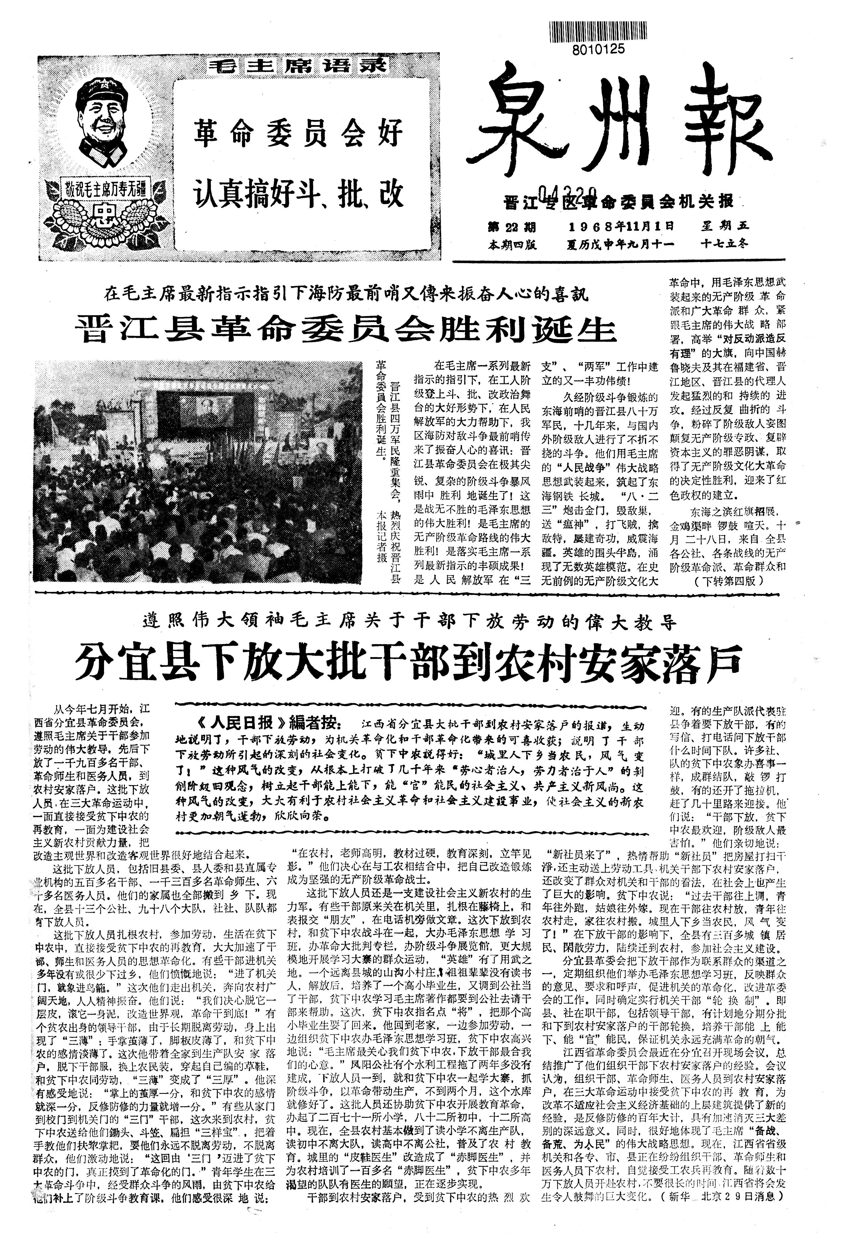 在毛主席最新指示指引下海防最前哨又傳来振奋人心的喜訊 晋江县革命委员会胜利诞生