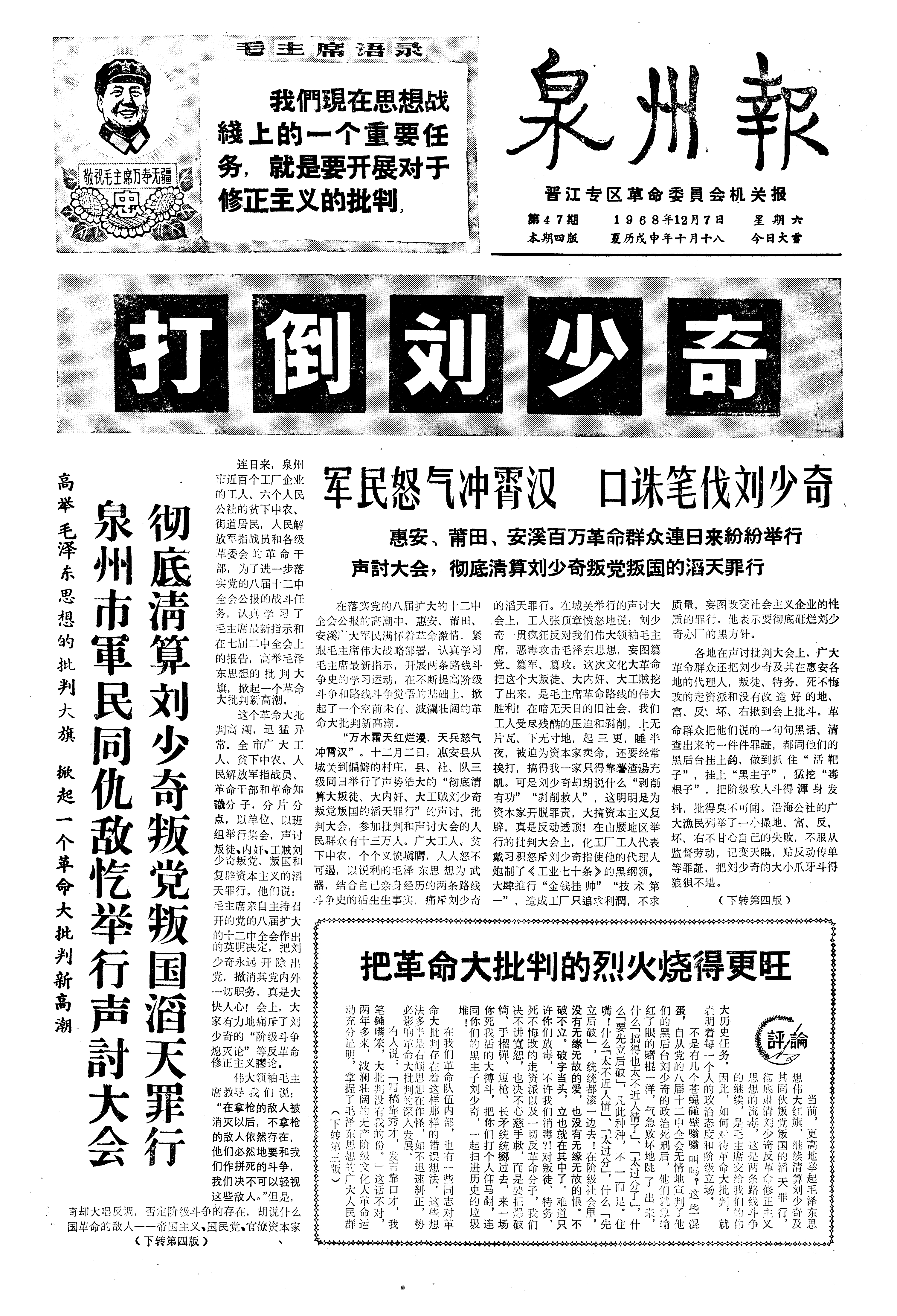 高举毛泽东思想的批判大旗 掀起一个革命大批判新高潮 泉州市軍民同仇敌忾举行声討大会彻底淸算刘少奇叛党叛国滔天罪行