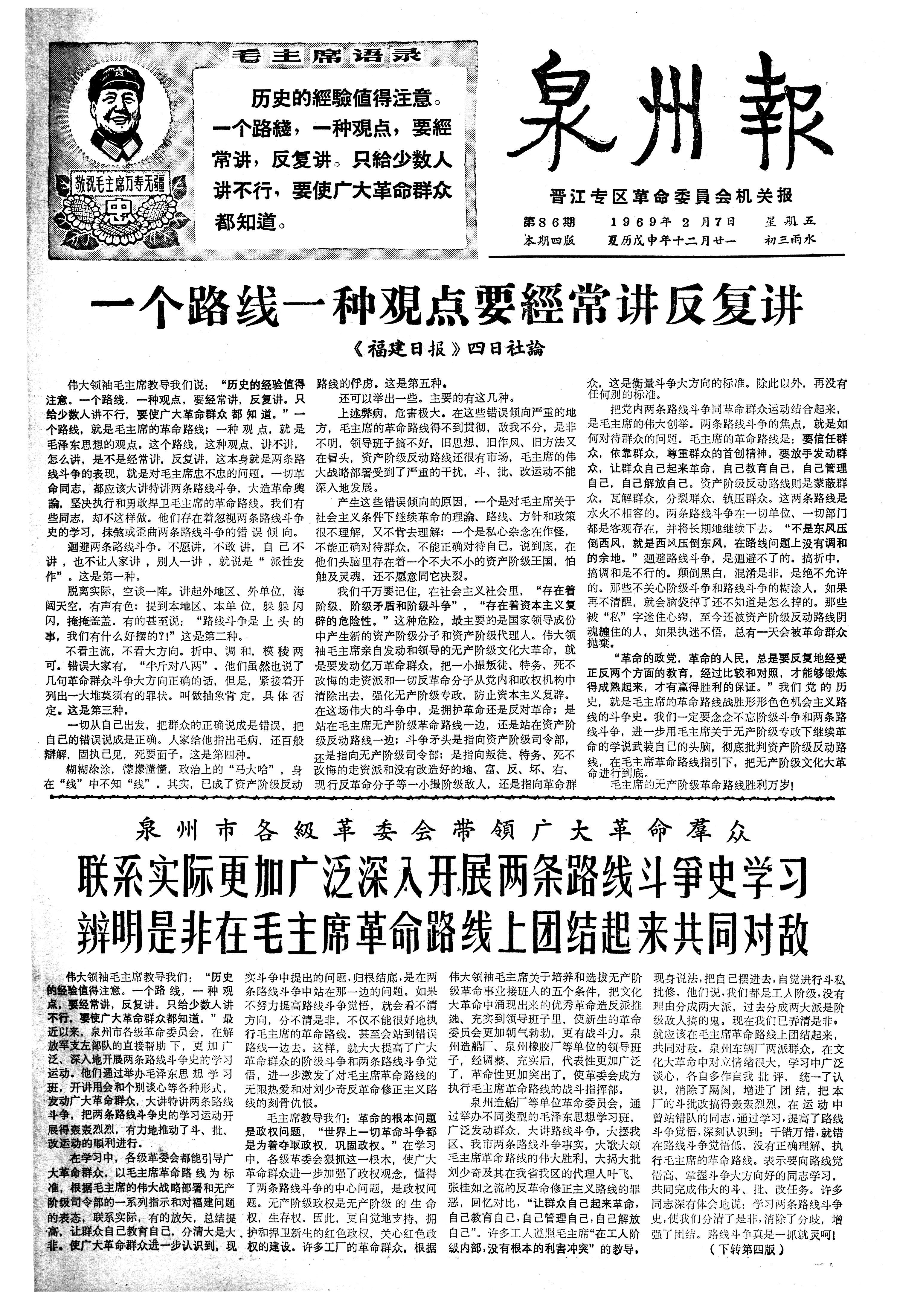 一个路线一种覌点要經常讲反复讲 《福建日报》四日社論