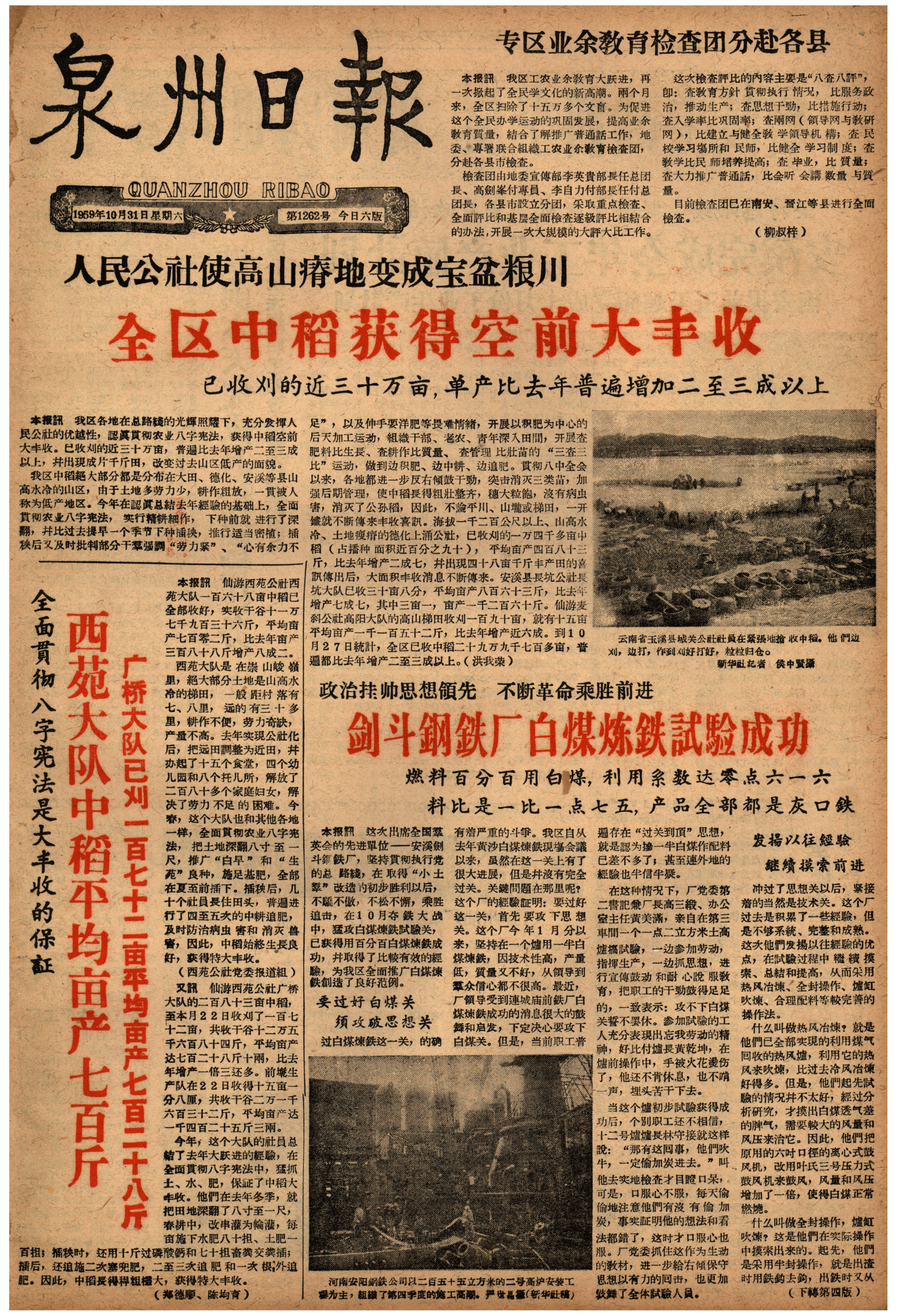 总路线、大跃进、人民公社的偉大胜利 全国各地秋粮普吿丰收