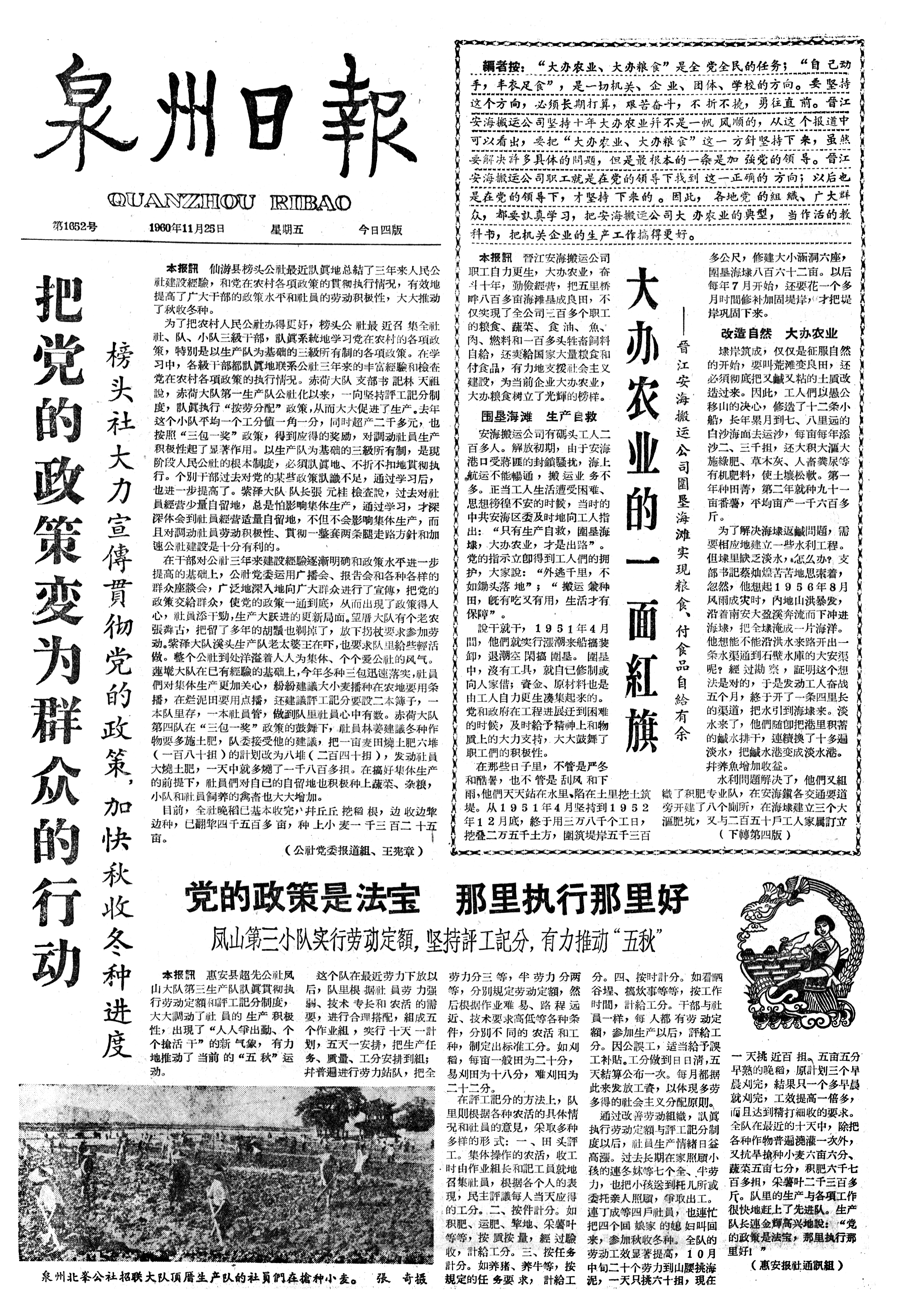 大办农业的一面紅旗 ——晉江安海搬运公司圍垦海滩实現粮食、付食品自給有余