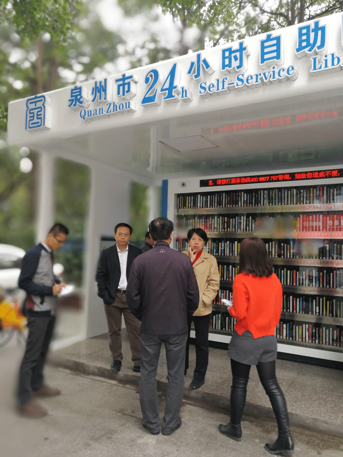 12日上午,市政府副市长周真平、文广新局长陈荣法一行莅临我馆调研工作,视察泉州市图书馆少儿分馆和街区24小时自助图书馆。