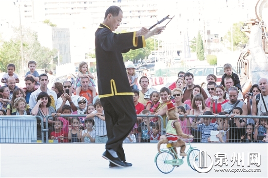 泉州艺术家代表团受应到友好城市—法国埃罗省演出时,当地民众到场欣赏提线木偶表演。 (陈起拓 摄)