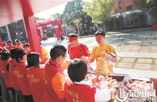 早报东南公益志愿者为参赛者提供服务(胡彦明 摄)