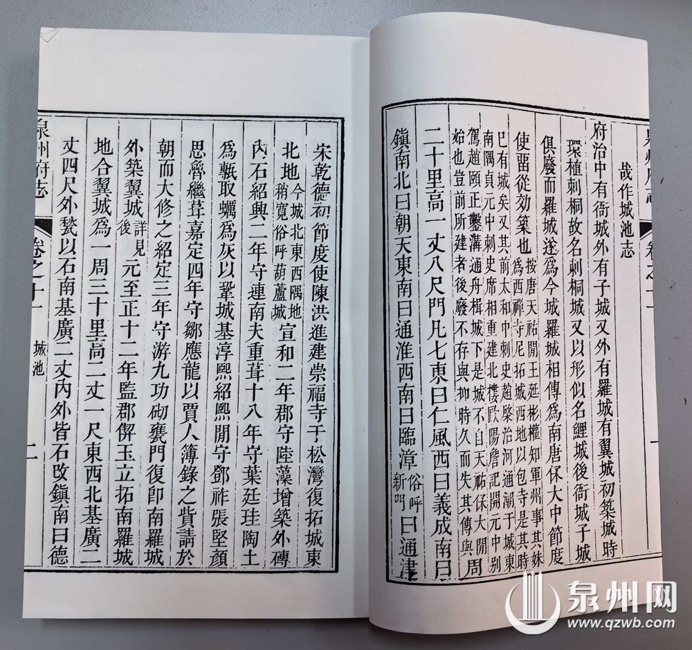 “品读清乾隆《泉州府志》的城垣记载,读到的不仅是筑城史、防御史,更是泉州人的生存史、文明史。”泉州市委党史和地方志研究室志书工作科副科长刘楷彬说,如今,临漳门、朝天门等城门修复完成,八卦沟、百源川池依旧流淌,见证了泉州“因海而兴、因防而筑”的轨迹,见证了“海上丝绸之路”的繁华,更承载着泉州人顺应自然、勇于开拓、同心守家的精神。